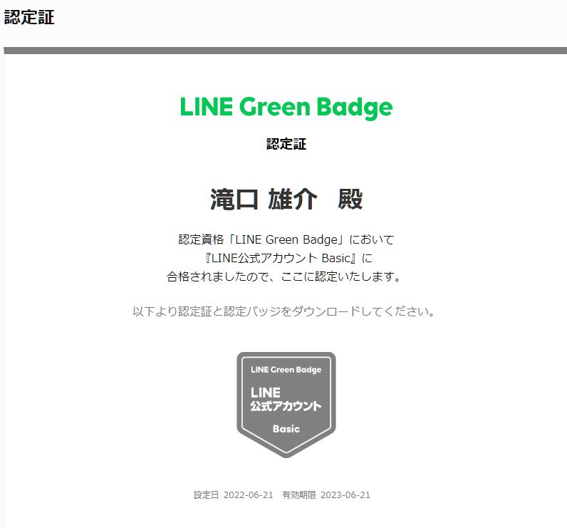 「LINE Green Badge」とは、”LINE公式アカウント”や”LINE広告”の知識や運用スキルに関する試験に合格すると取得できるバッジです。