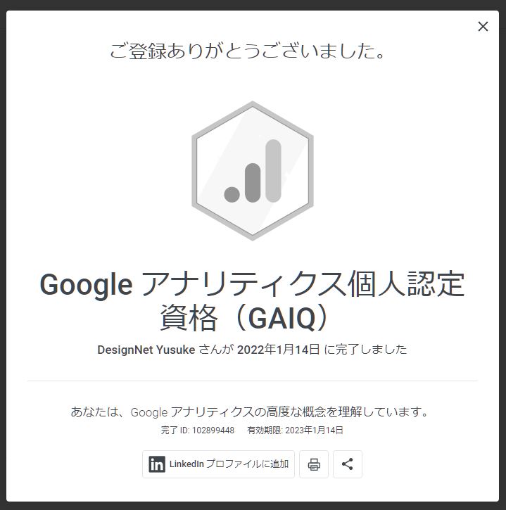 Google アナリティクス個人認定資格(GAIQ)取得しました!